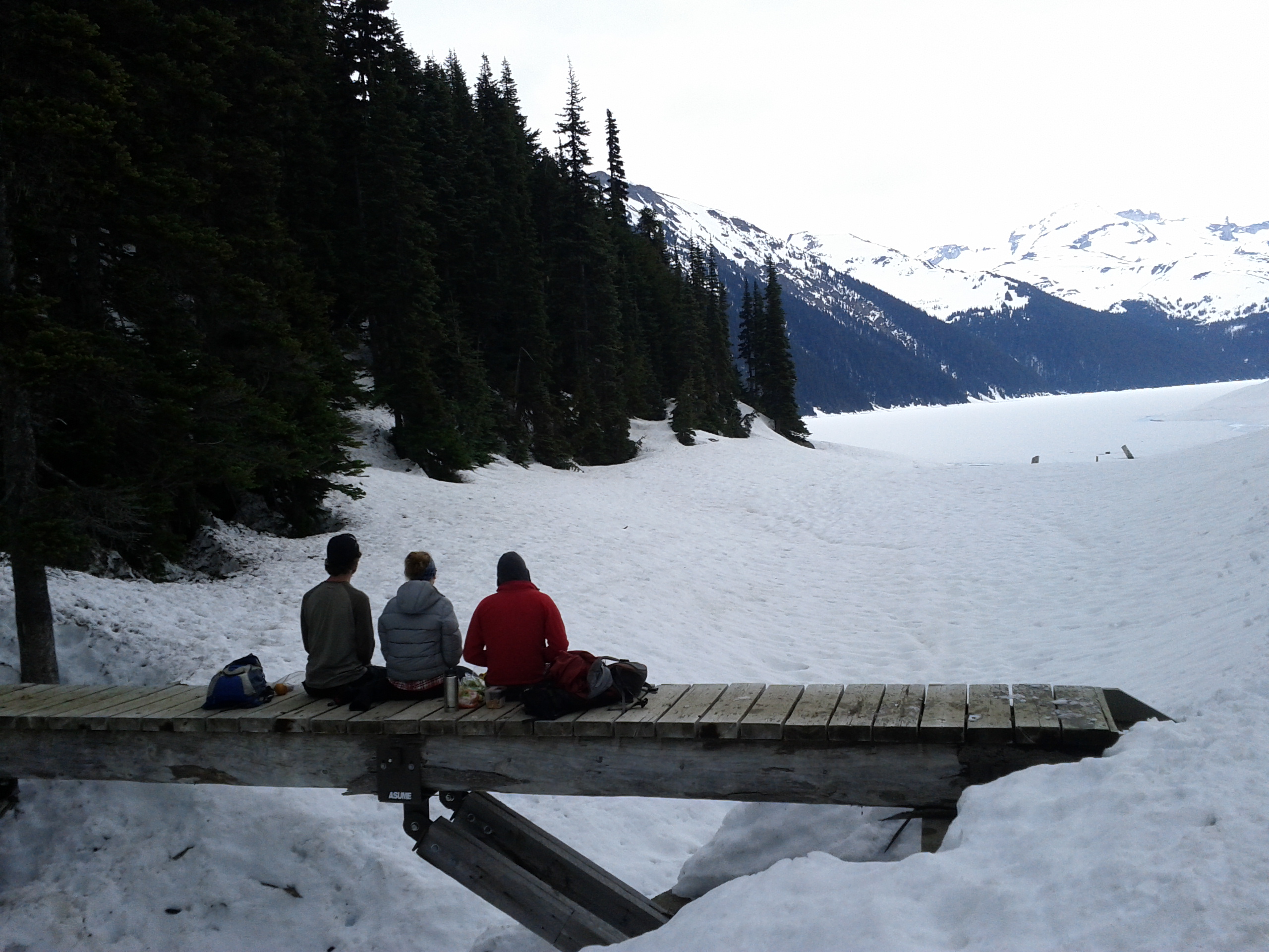 Kaan, Alice, and Phil eating lunch at Garibaldi Lake