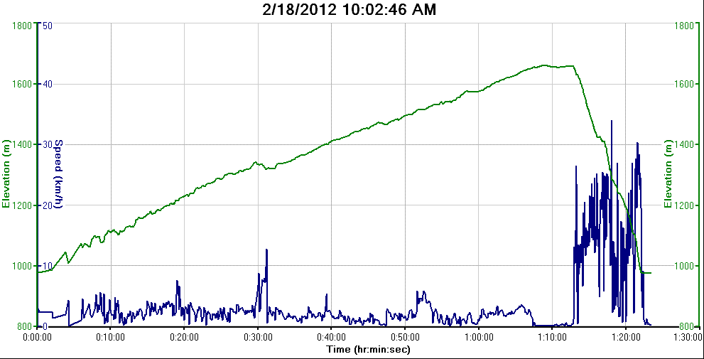 I had a gps running in my backpack. Here are some of the details it recorded. It was still finding satellites at the start of the race – that is why there are some big gaps between the first few data points.