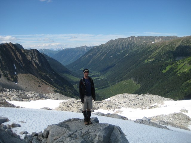That banner photo was taken at the edge of the Stein Divide on the western edge of Stein Valley Nlaka’Pamux Heritage Park. The view peers down from Van Horlick Pass to the valley that forms the headwaters for the North Stein river. When taking the photo, I was standing approximately where the green arrow is on this map.