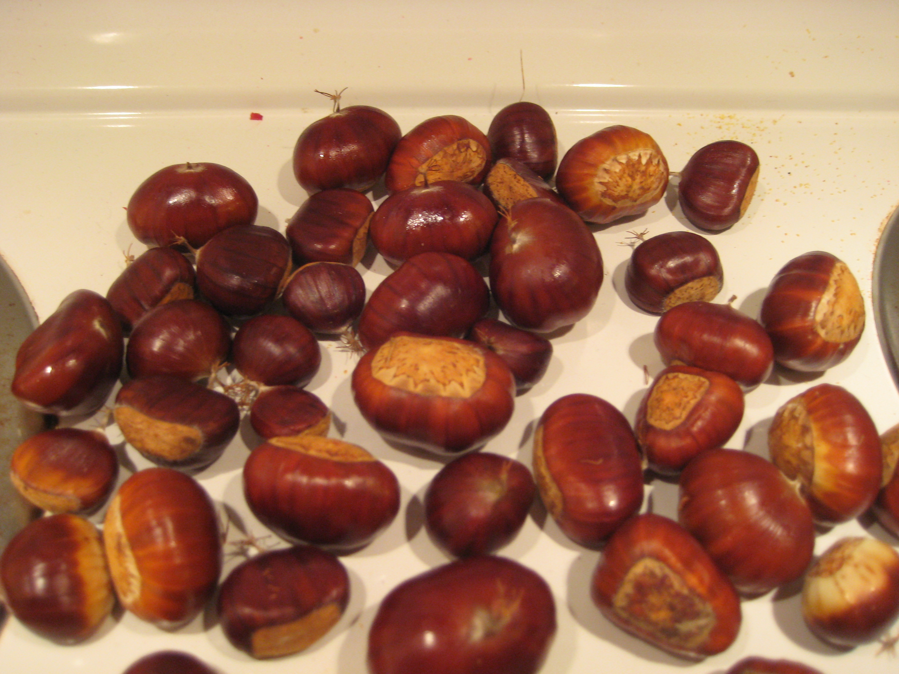 Last year on the evening of October 31st, my sister, Ame, was in town for a visit. She and Tess and I decided we would celebrate the autumnal season by roasting some of the exceptionally abundant chestnuts that had fallen from trees in the Dunbar area. Each of us had memories of roasting chestnuts on a fire earlier in our youth.