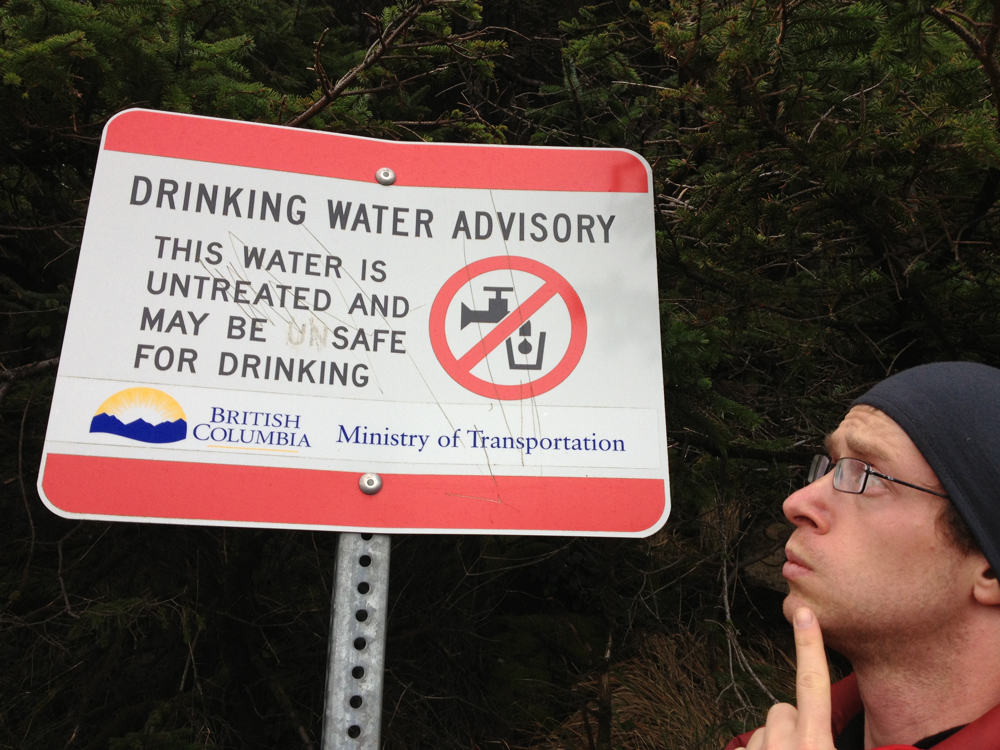 That wooden sign reads “Drink of these waters and you will always return to the islands”. There is also another sign that says the water “may be safe for drinking”.