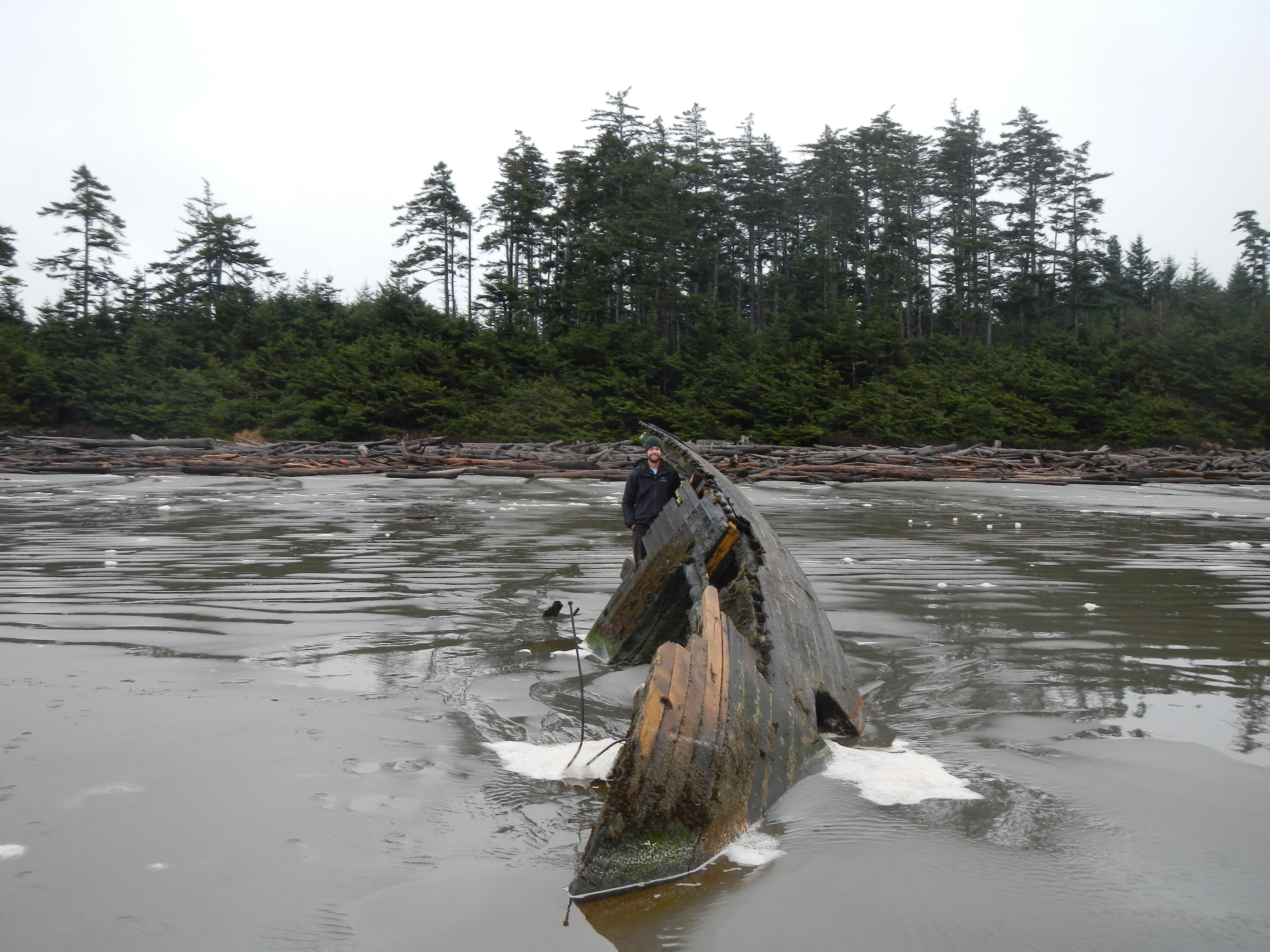 The ship came gently ashore in 1994. The wreck is not on any of the maps; I heard about it from one of the locals. It is about 3 km out along North beach. Apparently Susan Musgrave salvaged some of the wood for use in her home.
