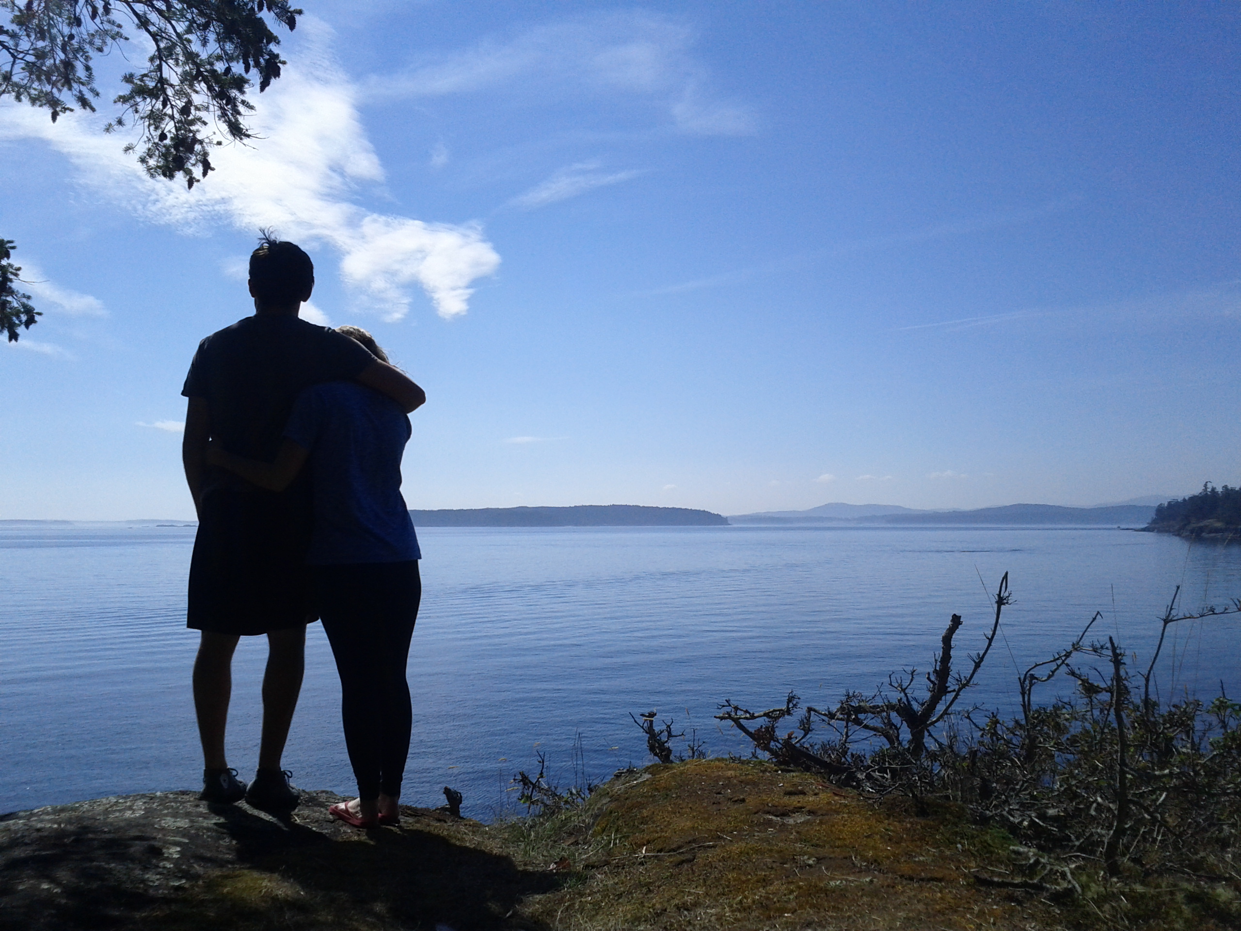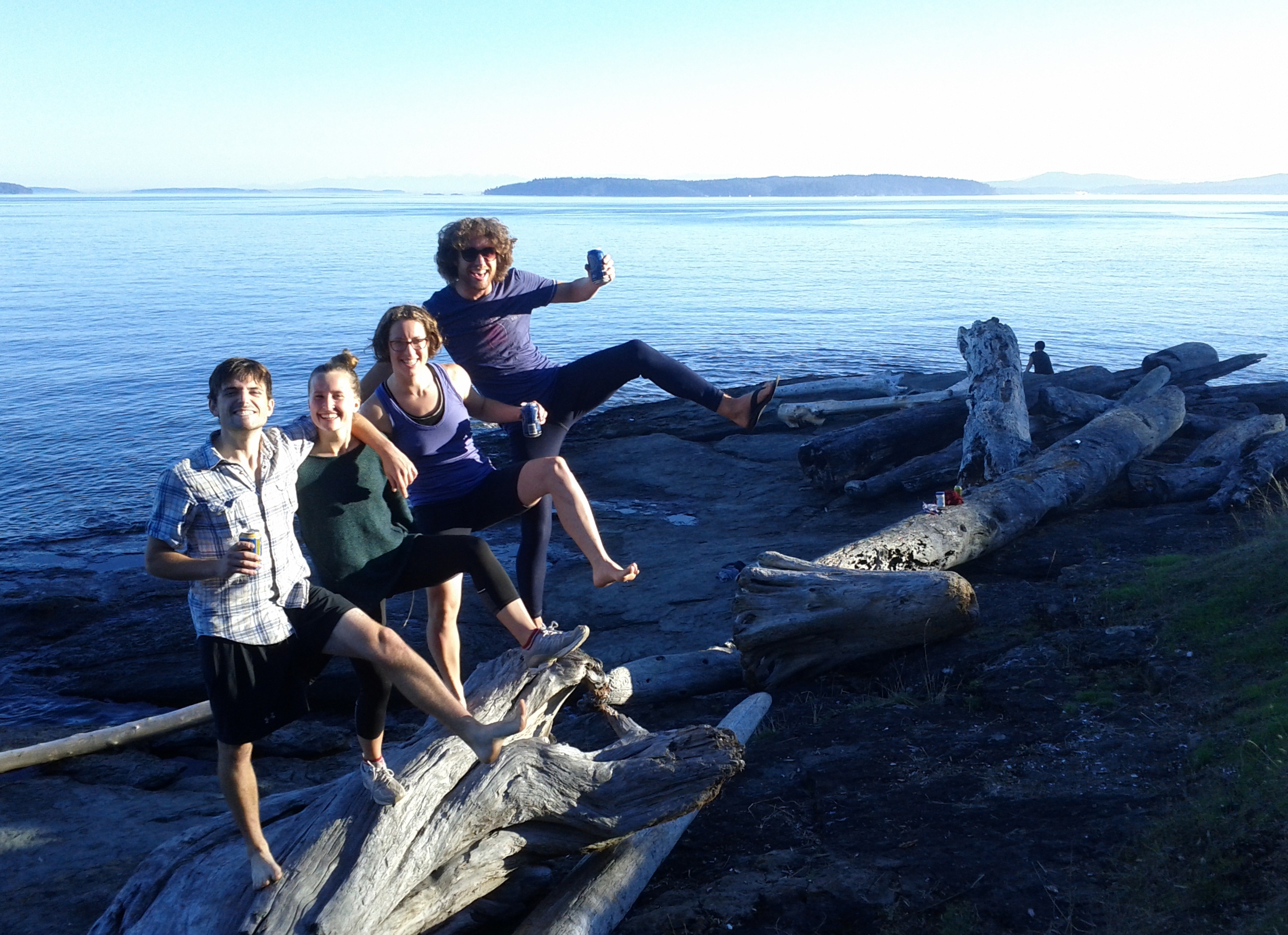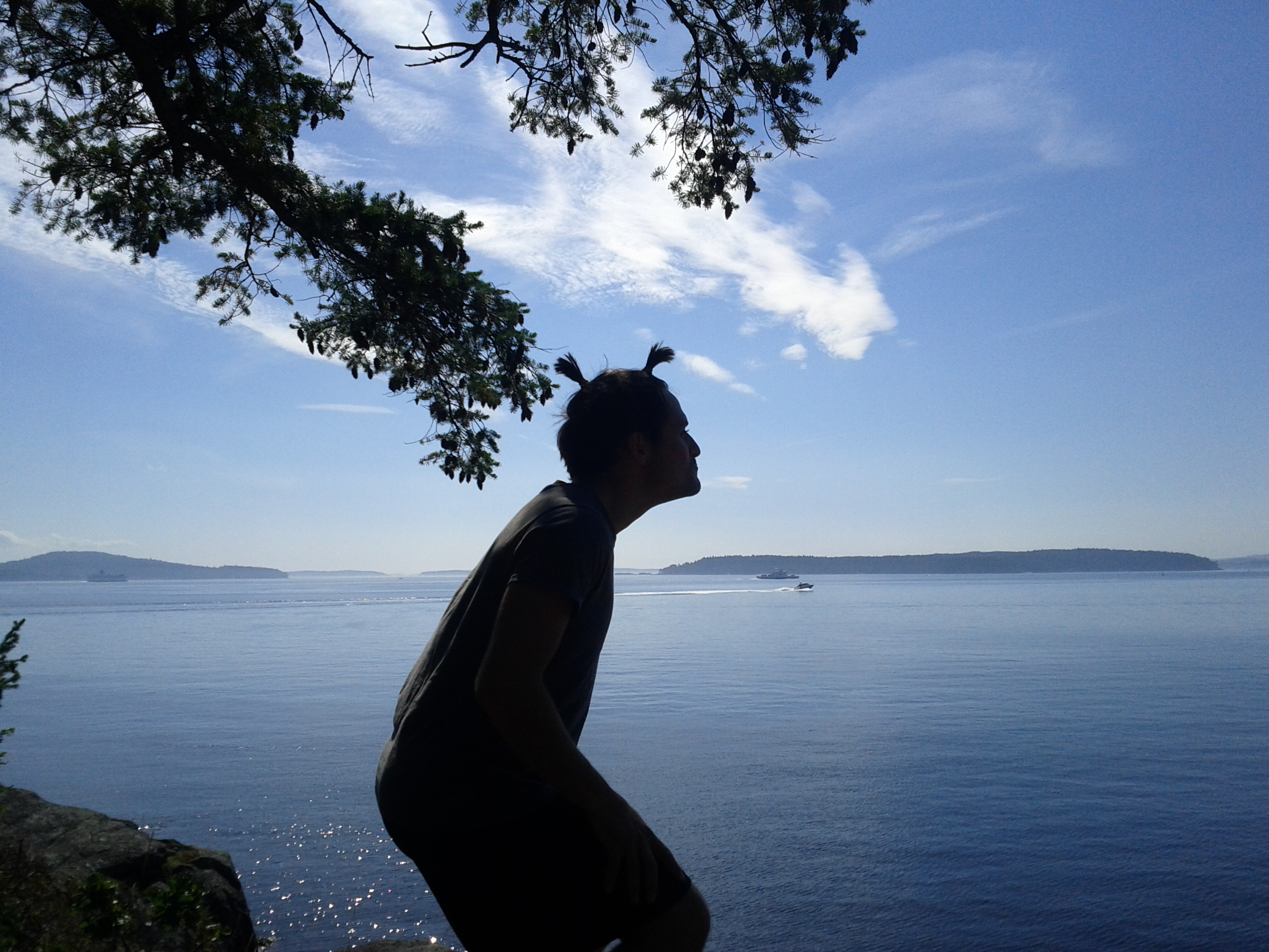 We biked down to Tsawwassen and then hitched a ride on a boat over to Saltspring Island. We arrived just in time to note the end of the island’s Pride parade. Even the police car had a balloon tied to his windshield wiper as he rolled down the road. We picked up some supplies at the market and began our trek south to Ruckle Park.