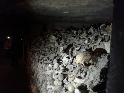 The catacombs of Paris are essentially a network of mine shafts under much of the city centre. The limestone excavated here has been used for city construction for about 1000 years.