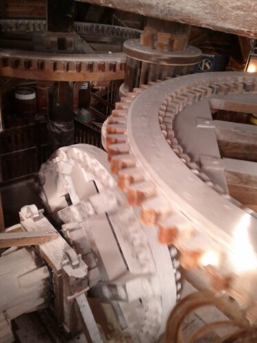 These things really are a marvel of engineering. This mill is crushing calcite ore into chalk powder.
