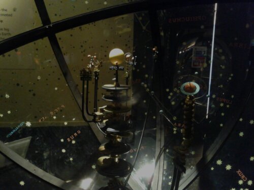 I lost myself staring at the intricate clockwork of the orrery. This one was built in 1913 and has a single set of gears to simultaneously drive all the planets and their moons.