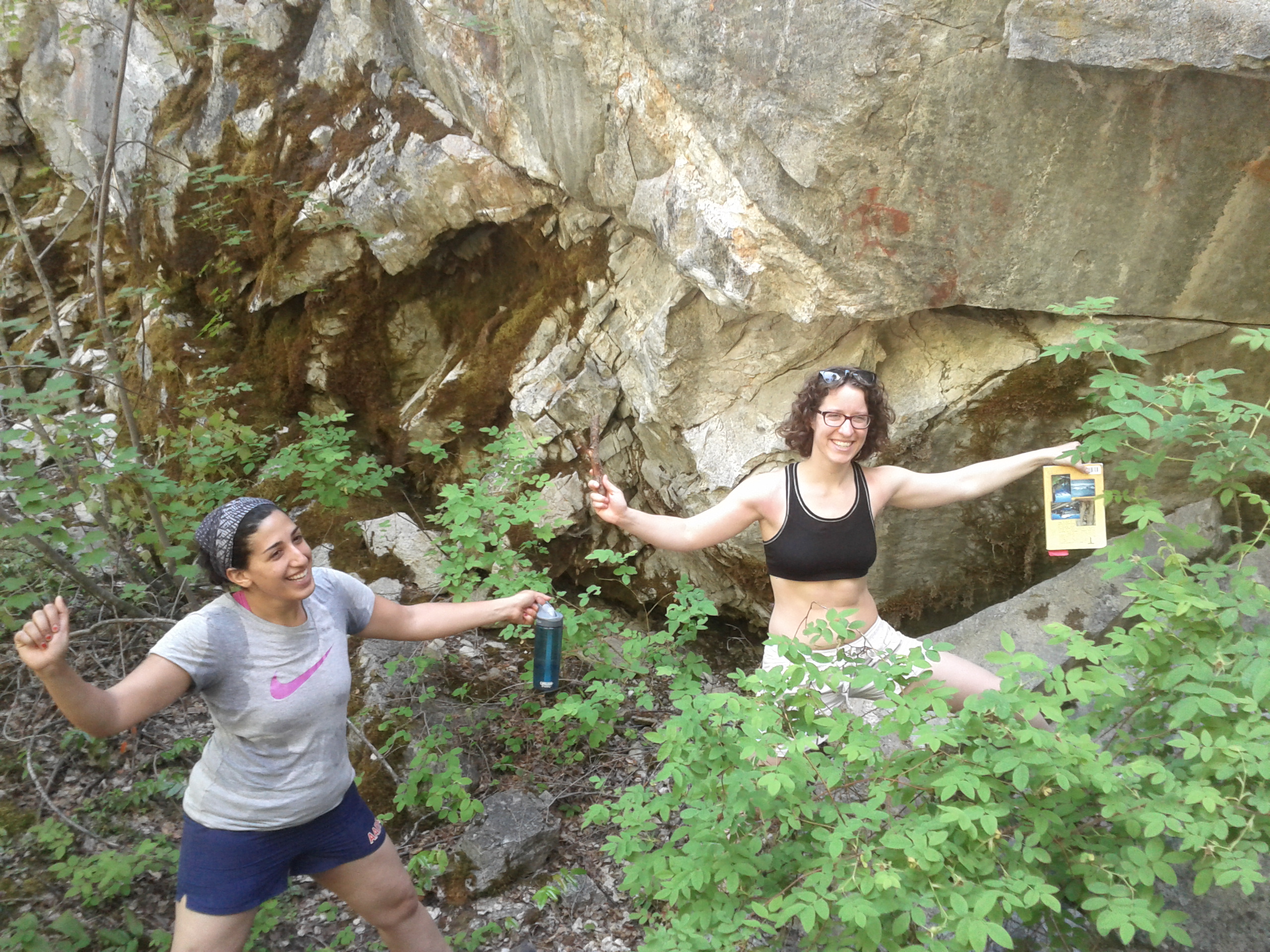 We explored the petroglyphs and then Sara and Tess decided to reenact some of the positions described.