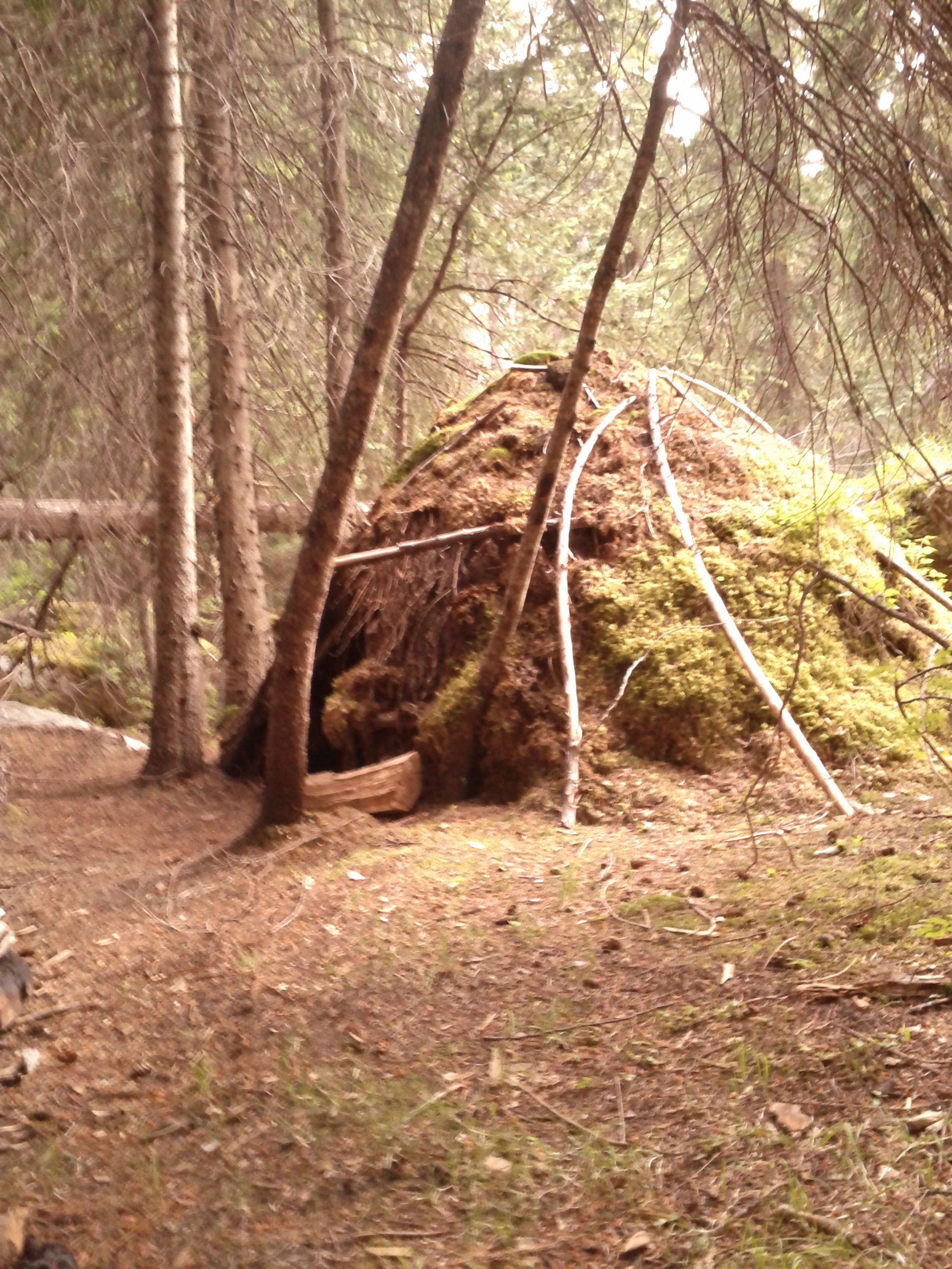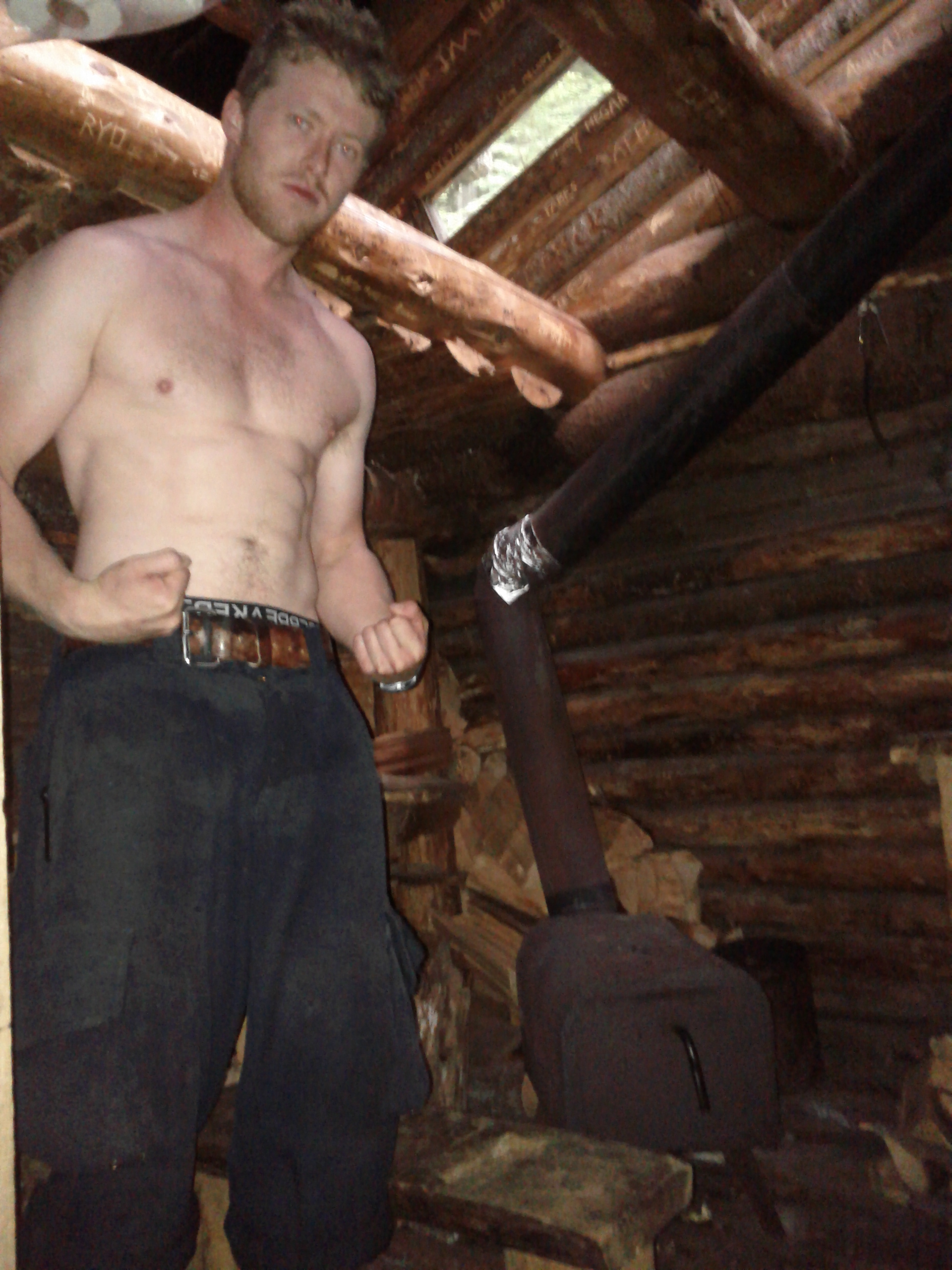 Inside it has two wood stoves and sleeping space for four full sized humans, one medium sized human, and one small sized human.