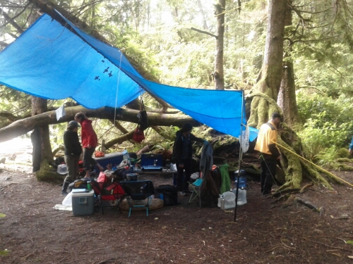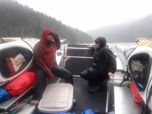 Early Friday we were on a shuttle with Sam, Rosie, Jeff, Kristina, and Pete. The sea captain, Scott, took us, our gear, and a collection of kayaks from Tahsis to Rosa island on the west side of Nootka island.